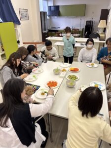 ケーキの土台はさつまいもとかぼちゃを使用して、クリームは水切りヨーグルトを使用しています。にんじんやパプリカ、ブロッコリーなど色とりどりの野菜を使って飾りつけをしていきます!